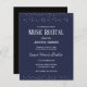 Liebliche Imitate Gold Glitzer Konfetti Highlights auf der oberen und unteren Grenze. Imitate silberne Musiknoten auf der Spitze der Einladung. Silber und blau elegant und einfach Musik Einladungen. Ideal für Klavier, Flöte, Klarinette, Trompete, Geige, Gitarre oder mehrere studentische Musikabende. Generisch für mehrere Instrumententypen.