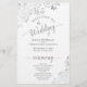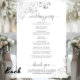 Diese Hochzeitsprogramme sind elegant und geschmackvoll, aber dennoch preisgünstig. Das Design umfasst verzierte silbergraue Imitat-Foliengurten und Wirbel mit grauem Text auf weißem Hintergrund. Die Typografie zeigt eine laky Skriptkalligraphie, und es gibt Raum für Details über die Zeremonie, das Brautparty, und ein kurzes Dankeschön.
