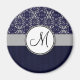 Silver Damask on Blue with Stripes and Monogram Magnet