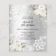 Für einen eleganten und romantischen 60. Hochzeitstag. Ein silberfarbener Hintergrund mit weißen Blumen, Rose, Imitaten, Diamanten und weißer Spitze. Personalisieren Sie Ihre Namen und Details und fügen Sie diese hinzu. 1 Blatt = 1 Einladung mit Druckkante bis Kante.