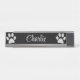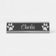 Silver Dog Paw auf schwarzem Hintergrund Schreibtischnamensplakette