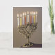 Envoyez des salutations à Chanukah avec une menorah argentée élégante avec des bougies éclairées.