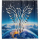Bei Sonnenaufgang fliegt ein Silberadler über der Erde zu den Sternen.