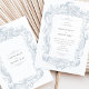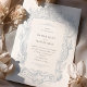 Beginnen Sie Ihre Gäste in der ruhigen Eleganz der Silver Elegance Baroque Wedding Einladung. Diese Einladung, die das Wesen eines Winterflüsterers erweckt, besticht durch einen zarten, mattierten silbernen Rahmen, exquisit detailliert mit zauberhaften Schnörkeln, die an einen schneebedeckten barocken Palast erinnern. Das sanfte Zusammenspiel von Licht und Schatten in der monochromen Palette verleiht den komplexen Designs Tiefe und schafft so ein Gefühl ruhiger Eleganz. Diese Suite ist ideal für Paare, die ihre Brautwerbung mit der edlen Ruhe einer Rokoko-Landschaft verbinden möchten, die in eine Kunstform aus Papier umgewandelt wurde.