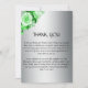 Mit dieser luxuriösen Dankeschön-Karte zeigen Sie Ihren Hochzeitsgästen Ihre Dankbarkeit. Mit atemberaubend silberfarbenem Hintergrund bietet es zwei wunderschöne, lebendige grüne Rosenbuquets, die Ihren Botschaften Glanz und Eleganz verleihen. Diese Karte kann auf hochwertigen Cardstock gedruckt werden, um dem Gefühl Ihres besonderen Tages gerecht zu werden.