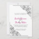 Eleganter metallischer silberner, floraler Rahmen über weißem Hintergrund. Die Rückseite ist grau