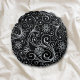 Silver Floral Swirl auf schwarz Rundes Kissen