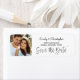 Handgeschriebene Imitate Silver Foil Script Wedding Save the Date Foto Rücksendeadresse Label.Das Save the Date Foto Rücksendeadresse Etikett kann geändert werden, um Ihren Namen und Ihr Foto. Dieses Adressetikett hat ein Bild, das ersetzt werden kann.