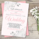 Diese Einladung zur Hochzeit zeichnet sich durch ein schlichtes und elegantes Design aus, das auf weißem Hintergrund mit rosa und grauem Schriftzeichen versehen ist. Die Einfachheit des Designs wird durch die silbernen Imitate-Folienschellen in den Ecken ausgeglichen. Das extravagante Filigree ist verziert und blumig und bildet einen schönen Kontrast zum dezenten Text. Die Formulierung ist formell und traditionell, aber die schicke Anordnung macht es modern und zugänglich.