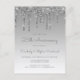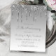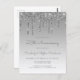 This trendy 25th wedding anniversary party invitation features a sparkly silver faux glitter drip border and silver ombre background. The words "25th Anniversary" and the first names of the couple appear in casual silver gray handwriting script, with the rest of the customizable text in sans serif font.
