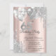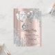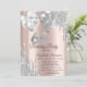 A modern, chic, and glamorous with silver glitter drips, and balloons on a rose gold background.