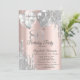 A modern, chic, and glamorous with silver glitter drips, and balloons on a rose gold background.