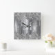 Silver Glitter Drips Monogram Personalized Quadratische Wanduhr