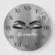 Silver Glitter Sparkle Eyelashes Monogram Große Wanduhr