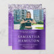 Hübsche Imitate Silber Glitzer und lila Folie Abschluss Ankündigung Budget-Blatt Papier lädt für Ihre Tochter ein. Fügen Sie Ihr eigenes Foto des Absolventen hinzu, oder löschen Sie das Platzhalterbild und genießen Sie die Hintergrundoption. Verwenden Sie alle Caps mit diesen Schriftart... aber Sie können den Stil des Schriftartes anpassen. Jeder Funken oder Glanz ist eine digitale Schöpfung.