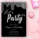Silver Glitzer Black Girly Geburtstagsparty Einladung