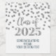 Graduation Party individuelle Weinflaschen Etiketten Klasse von 2025 mit silber Glitzer Muster confetti.