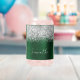 Passen Sie das moderne handgeschriebene Skript an, um Ihre eigene Dose Glas für sie zu kreieren. Fügen Sie ein Monogramm Initial hinzu, um eine erste Kombination aus Vornamen zu erstellen. Girly Imitats silber Glitzer und gebürstete dunkelgrüne Metal-Folie digitale Kunst (es druckt wie ein Foto auf Ihrem modernen Geschenk). Passen Sie die Farbe des weißen Schriftartes an, wenn Sie möchten.