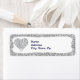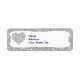Legen Sie eine abschließende Touch auf Ihre Hochzeitskorrespondenz, wenn Sie diese einfach eleganten Adressetiketten senden. Diese schönen Adressetiketten sind alle bereit, personalisiert zu sein. Personalisieren Sie die Etiketten, indem Sie Ihren Namen und Ihre Adresse in das angegebene Feld eingeben. Sie können den Stil, die Größe und die Farbe des Schriftartes ändern.