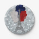 Silver Glitzer Eiffel Tower Red White Blue Party Pappteller