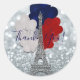 Silver Glitzer Eiffel Tower Red White Blue Party Runder Aufkleber