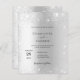 Eine moderne, minimalistische und formelle Hochzeitseinladung. Imitat silber aussehender Hintergrund mit Imitat Glitzer. Personalisieren Sie Ihre Namen und Details und fügen Sie diese hinzu. Schwarze Buchstaben. 1 Blatt = 1 Einladung mit Druckkante bis Kante.