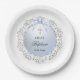 Silver Glitzer Frame Blue Bow Taufe Pappteller