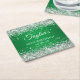 Erstellen Sie Ihre eigenen 40. Geburtstag Party quadratische Papier Untersetzer. Girly Imitate funkelnd silber Glitzer über einen leuchtend Kelly grünen Farbverlauf Hintergrund. Löschen Sie den Farbverlauf oder die digitale Kunstgrafik, wenn Sie einen soliden Farbhintergrund bevorzugen. Passen Sie die Stile des Schriftartes an, um Ihr eigenes Design für ihre besondere Feier zu kreieren. Eine klassische, elegante Kalligraphie gepaart mit einem Schriftart aus Serifen.