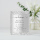 Ein modernes, elegantes Hochzeitsprogramm, Zeitleiste. Imitate silber metallische Hintergrund mit Imitaten verziert silber Glitzer Staub. Personalisieren und fügen Sie Ihre Namen und Hochzeitsdetails. Schwarze Buchstaben. Wenn Sie mehr Text haben, ist es möglich, den Zeilenabstand zu verringern.