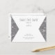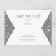 Silver Glitzer Bild und White Envelope Stil. Hochzeit Save the Date. Zurück mit Braut und Bräutigam Nachnamen sowie dem Text Hochzeit. Website. Klasse.