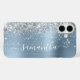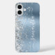 Silver Glitzer Light Blue Metallic Girly Signature iPhone 16 Plus Hülle