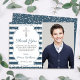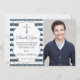 Silver Glitzer Navy Blue Stripes Erste Kommune Dankeskarte