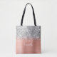 Passen Sie das moderne handgeschriebene Skript an, um Ihre eigene Einkaufstasche mit einem Überdruck zu erstellen. Fügen Sie ein Monogramm Initial hinzu, um eine erste Kombination aus Vornamen zu erstellen. Girly Imitate silber Glitzer über eine rosa pfirsich oder hellkorallenorange brushed Metall Look Folie. Folie, Glitzern und Glitzer sind digitale Kunst, die wie ein Foto gedruckt wird.