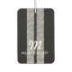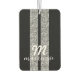Silber und Grau Glitzer funkelnd Rennstreifen Auto-Lufterfrischer mit einem personalisierten Namen und Monogramm für den Automobil-Enthusiasten mit Retro-Look, aktualisiert mit einem modernen Look.