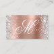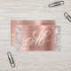 Erstellen Sie Ihre eigenen Imitate funkelnd silber Glitzer und eine Rose Gold Satin Folie Visitenkarten. Auf der Vorderseite befindet sich ein extravagantes, weißes Kalligraphieskriptmonogramm. Sie können die Farbe und den Stil des Schriftartes anpassen. Auf der Rückseite sind weitere Kontaktinformationen verfügbar. Ein mädchenhaftes Design für Hochzeitsplaner oder Schönheitstechniker. Alle mädchenhaften Grafiken und Elemente dieses Designs werden wie ein digitales Foto gedruckt.