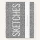 Silber funkelndes Glitzer Muster personalisiertes Sketchbook Notizbuch für Kunst und zeichn mit einem großen Drucktitel von "Sketches by... and your name" auf dem Cover in einem modernen serifenlosen Schriftart.