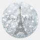 Silver Glitzer Sparkle Bling Eiffel Tower Party Runder Aufkleber