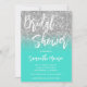 Silver Glitzer Türkis QR Code Brautparty Einladung
