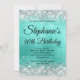 Erstellen Sie Ihre eigene extravagante, monogramm stilvolle Meilenstein Geburtstagsfeier für sie. Dekorative Imitate funkelnd silbergraue Glitzer-Grafiken bilden einen oberen und unteren Rand. Die digitale Hintergrundkunst zeichnet sich durch eine türkisfarbene, ombre-Stil gebürstete Metallfolie aus. Passen Sie die Einladungs- und Monogramm-Schriftart-Farben oder -Stile an. Die luxuriösen Glitzern, Glitzer und Folie werden mit künstlerischen Elementen erstellt, die wie ein Foto gedruckt werden. Ein toller 40. Geburtstag lädt zu Ihrem besten Freund ein.