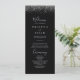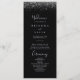 Dieses Hochzeitsprogramm in Silber Glitzer ist perfekt für eine rustikale Hochzeit. Das einfache und elegante Design zeichnet sich durch silberne Konfetti in einem schwarzen Hintergrund aus.