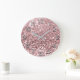 Silver Gray Arabic Numbers Pink Glitzer Blush Große Wanduhr
