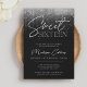 Diese moderne, süße 16-Einladung besticht durch silbergraue Funkellichter und einen trendigen Kalligraphie-Script-Schriftart auf schwarzem Hintergrund. Ein perfektes Design für eine glamouröse, süße 16 Geburtstagsfeier. Bearbeiten Sie diese hübsche 16-Einladungs-Vorlage selbst mit den Online-Bearbeitungswerkzeugen.