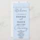 Das hellblaue Hochzeitsprogramm wird vorgestellt und mit einer himmlischen Reihe von Stars aus suspendiertem Silber geschmückt. Dieses bezaubernde Design ist sorgfältig für Paare konzipiert, die himmlische, sternförmige oder mystische Themen suchen, die perfekt das Wesen eines faszinierenden Sternenhimmels und eines himmlischen Wunders, der sich ideal für Nachthochzeiten eignet, erfassen. Auf der Vorderseite des Programms werden die Namen der Paare, das bedeutsame Hochzeitsdatum, die Veranstaltungsdetails und die umfassenden Zeremonieinformationen elegant vor einem ruhigen, hellblauen Hintergrund dargestellt. Der Großteil des Textes wird in einem übersichtlichen und leicht lesbaren Schriftart präsentiert. Um eine Touch der Verzauberung hinzuzufügen, sind die Wörter "Willkommen", "Zeremonie" und "Hochzeitsfeier" schön in einem dekorativen Schriftart geschrieben. Dieser exquisite Skript-Schriftart verleiht dem Programm einen Hauch von Anmut und Raffinesse und erhöht so die visuelle Faszination. Drehend auf der Rückseite, unter der Reihe von fesselnden Silberschießstars, ist eine umfassende Auflistung der Details der Hochzeitsfeier sorgfältig vorgesehen. Das himmlisch inspirierte Motiv verstärkt das mystische Ambiente des Programms und eignet sich somit hervorragend für Paare, die ihre Hochzeit mit himmlischer Faszination und mystischem Charme verbinden möchten. Unser Light Blue Wedding Programm, das auf die himmlische Schönheit der Rose abgestimmt ist, mit einer faszinierenden Reihe von Stars, die in aufgehängtem Gold schießen, verleiht Ihrem Fest einen etherischen Charme. Die zauberhafte Atmosphäre und die elegante Präsentation machen es zu einer idealen Wahl für Paare, die an ihrem besonderen Tag eine bezaubernde Atmosphäre mit Sternen erleben möchten.