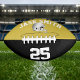 ・ Gold- und schwarze Tafeln. ・ Silberfußballhelm mit weißer Gesichtsschutzmaske. ・Weiß, anpassbarer Name und Nummer. Bequeme Vorlage rechts.