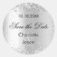 Ein Save the Date Aufkleber für Ihre Hochzeit. Ein Imitat silber aussehender Hintergrund, schwarzer Text. Mit Konfetti dekoriert. Personalisieren und fügen Sie Ihre Namen und Hochzeitsdatum.