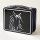Metallischer Blick auf diese einfache Skizze eines Pferdekopfes. Dieses Bild Pop aufgrund eines schwarzen Hintergrunds von der Seite.