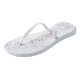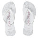 Tanzen Sie die Nacht mit diesen schönen Hochzeitsflip-Flops. Sie sind für die Braut konzipiert und zeichnen sich durch ein schlichtes und elegantes Design aus, das auf weißem Hintergrund mit rosa oder violett bedruckten Schriftzeichen und extravaganten silbergrauen Spitzen- und Wirbel aufwartet. Eine schöne Art, extravagant und angemessen bleibe, während Sie Ihren Füßen eine Pause nach einem langen Tag.