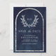 Silver Laurel Wreath Blätter Navy Blue Wedding Save The Date