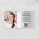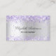 Ein Imitat silber aussehender Hintergrund. Mit violetten, lavenfarbenen Imitaten dekoriert, Glitzer Staub. Personalisieren und fügen Sie Ihren Namen und einen Text auf der Vorderseite. Zurück: Vorlagen für Ihr eigenes Foto, Name, Titel, Telefonnummer und Ihren eigenen QR-Code.