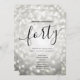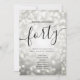 Elégant Glam Silver Parties scintillant Lights 40e anniversaire Script modèle avec programme de fête et texte de menu, lumières de parties scintillant et script de typographie moderne.